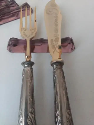 Conjunto de ocho reposa cubiertos de cristal de color rosa / morado. 8,5 cm de ancho. Forma para apoyar dos piezas de cubertería. En perfecto estado
