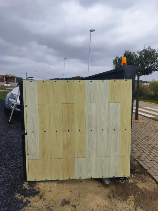 Se venden puertas metálicas, ideales para accesos. - Material: Metal. - Color: Gris. - Diseño: Panelado vertical.