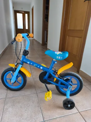 Bicicleta infantil azul y amarilla