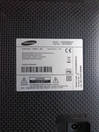 Televisor Samsung modelo UE22H5000AW, ideal para quien necesite piezas de repuesto,tiene una franja blanca vertical en la pantalla.se puede utilizar la fuente de alimentación tarjeta main t-con.el pie ya no lo tengo - Pantalla de 22 pulgadas. - Color negro.