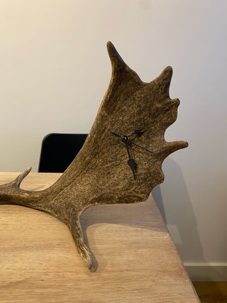 Pieza decorativa única con forma de asta de gamo, ideal para añadir un toque rústico a tu hogar. El reloj está integrado de forma original en el asta. - Diseño natural y orgánico. - Mecanismo de reloj funcional.