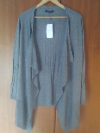 Elegante cárdigan de lana extrafina en color gris. Ideal para añadir una capa de estilo a tu atuendo. - Tejido suave y ligero. - Diseño abierto con caída. - Apto para lavado a mano.