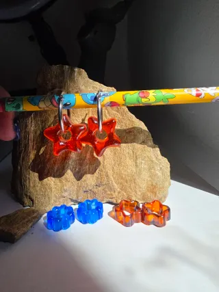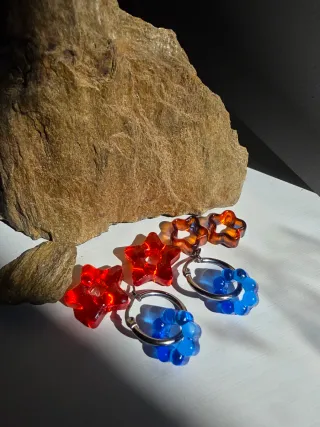 Pendientes llamativos con un diseño orgánico y moderno. - Elaborados en resina translúcida. - Combinación de colores vibrantes. - Cierre seguro para un uso cómodo. - hipoalergénicos
