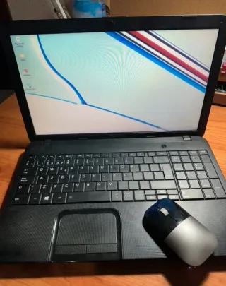 Portátil Toshiba en buen estado, listo para usar. - Diseño elegante en negro y plateado. - Teclado completo con teclado numérico.