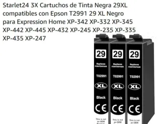 3 cartuchos negros XL + 4 cartuchos negros normales. Precintados. Compatible con EPSON XP 342, 332, 345, 442, 445, 432, 245, 235, 335, 435, 247