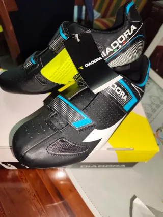Zapatillas deportivas Diadora en color negro con detalles en azul. - Cierre de velcro. - Diseño deportivo. - Totalmente nuevo sin usar. Los vendo por qué no me están bien