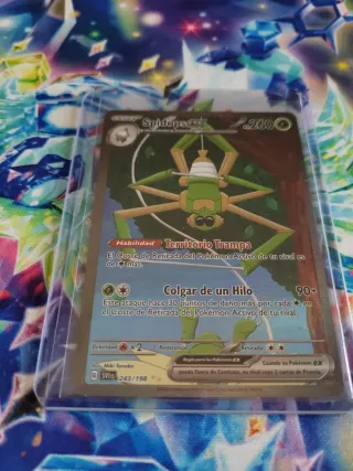 Carta Pokémon Spidops EX de la expansión SVIB. - Número de carta: 243/198. - Ilustrador: Miki Tanaka. - Habilidad: Territorio Trampa. - Ataque: Colgar de un Hilo.