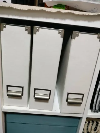 Mueble de almacenaje con cajones de madera y detalles en azul. - Estructura de madera. - Cajones con tiradores redondos.