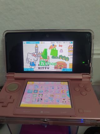 Consola portátil Nintendo 3DS en color rosa. Entrego con tarjeta SD de 32 GB con 40 juegos y capacidad para más. Tiene la aplicación de la tienda en la propia consola para poder descargar los juegos sin necesidad de ordenador. - Pantalla superior e inferior. - Botones de control direccional y de acción. - Cámara integrada. Se entrega con cargador compatible y funda, así como carcasa transparente de protección.