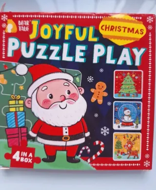 Set de cuatro puzzles con temática navideña. - Incluye diseños de Santa Claus, árbol de Navidad, muñeco de nieve y reno. - Ideal para disfrutar en familia durante las fiestas.