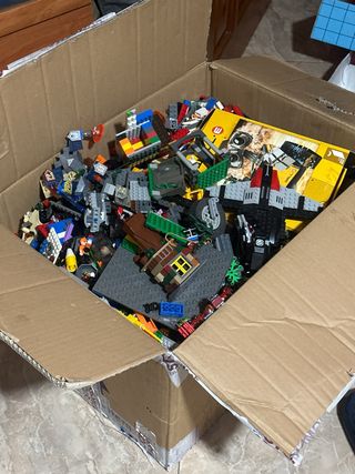 Se vende lote de 13 kg de piezas LEGO de distintas temáticas: Star Wars, Bob Esponja, Transformers, Los Simpsons, Power Rangers, Walle y muchas más. Piezas desmontadas y mezcladas, sin instrucciones ni identificación exacta de sets, pero la mayoría están prácticamente completos. Hay motores lego y cosas de ese set. La caja es de 34 de alto por 55 de ancho. Esta llena entera. Incluye principalmente LEGO original, aunque puede haber algunas piezas no originales. Ideal para construcción libre, coleccionistas o niños creativos. Con este lote se puede construir de todo.