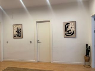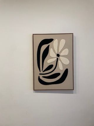 Dos cuadros decorativos con un diseño abstracto moderno que aportarán un toque de estilo a tu hogar. - Motivos vegetales en tonos beige y negro. - Marcos de madera. - Tejido de tela. - 50 x 70 cm. - 30 euros los dos.