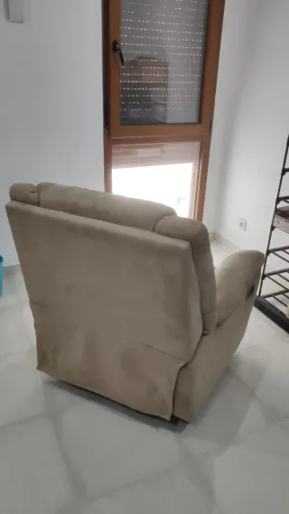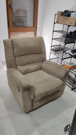 Cómodo sillón reclinable con tres posiciones. El respaldo se desmonta para poder transportarlo más cómodamente. - Tapizado en tela. - Color beige. Recogida en mano, se encuentra en Begíjar. No hago envíos.
