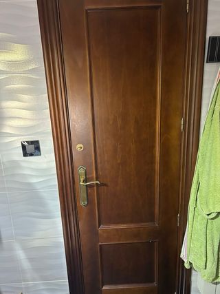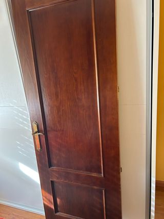 Puerta de nogal con un diseño clásico y elegante. - Acabado en madera de nogal. - Tirador metálico dorado. 3 puertas de 62, dos de 72, madera nogal y precio 50 euros por puerta completa, puerta, tapajuntas, galces, tiradores. Recoger en Baeza