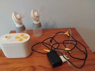Extractor de leche Medela Pump in Style, ideal para la lactancia. - Incluye dos embudos. - Mangueras y adaptador de corriente.