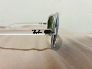 Gafas de sol Ray-Ban con un diseño moderno y lentes de espejo azules. - Montura de color blanco translúcido. - Lentes con acabado espejo en tono azul vibrante. - Logo de Ray-Ban grabado en la patilla.