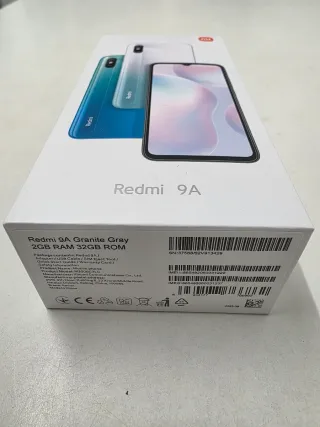 Teléfono móvil Xiaomi Redmi 9A en color granito gris. Modelo con 2GB de RAM y 32GB de almacenamiento interno. - Incluye cargador y cable USB. - Herramienta para extraer SIM. - Guía de inicio rápido.