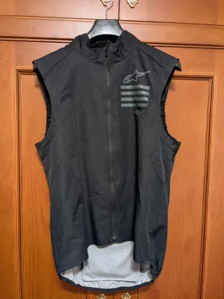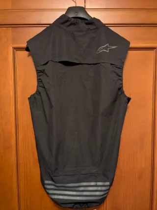 Chaleco Alpinestars Descender en talla M. Diseño ligero y funcional. Impermeable y cortavientos. Se guarda en su propio bolsillo trasero y tiene una cinta para agarrarlo al cuadro. - Color negro. - Logo Alpinestars en el pecho y en la espalda. - Cremallera frontal completa. - Ajuste medio. - Ventilación en la espalda. - Bajo trasero alargado.