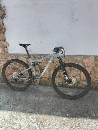 Bicicleta de montaña con doble suspensión. - Cuadro de aluminio. - Frenos de disco hidráulicos. - Ruedas de 29 pulgadas. Ruedas syncros 29" ancho 30.