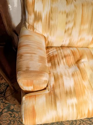 Se vende amplio sofá de dos plazas con relleno de plumas. Es cómodo y acogedor. Tapizado impecable. Totalmente desenfundable, lo que facilita su limpieza y mantenimiento. Estampado abstracto. Medidas: Fondo 1m x Altura respaldo: 74 cm x Largo: 190 cm