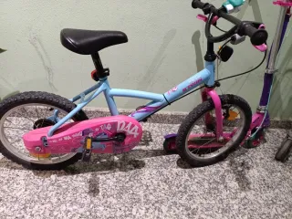 Bicicleta infantil BTWIN en tonos azul y rosa, con detalles de My Little Pony. - Cadena protegida por guardabarros. - Ruedines no incluidos. - Ideal para iniciarse en el ciclismo.