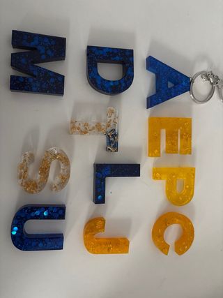 Llavero con letras. - Personalizados. - Incluye anilla y mosquetón plateado/dorado.