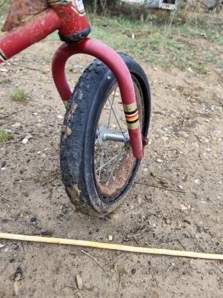 Triciclo vintage, para restaur o como pieza decorativa. Se regala. A recoger en persona Eje de las ruedas traseras y eje del manillar en buen estado.