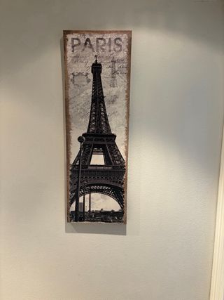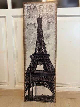 Decoración de pared con diseño de la Torre Eiffel. - Impresión sobre papel. - Marco de madera.