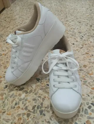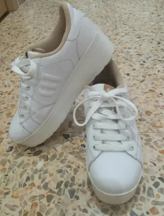 Zapatillas casuales de mujer con un diseño moderno y cómodo. - Exterior de piel sintética. - Suela de plataforma. - Cierre con cordones.