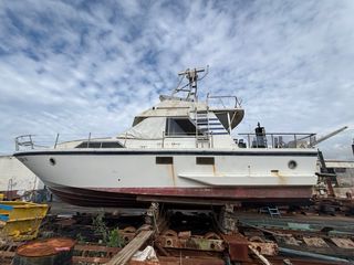 Se vende yate. - Casco blanco. - Línea azul en la banda. - Ventanas amplias.