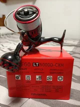 Carrete de pesca Daiwa Fuego LT 5000D-CXH. Incluye pomo de combate y trenzado siglon,8 hebras,0.16 - Modelo: Fuego LT 5000D-CXH - Peso: 250 g (8.8 oz) - Ratio: 6.2:1 - Max drag: 12 kg (26.4 lb.) - Capacidad de línea (nylon): 0.40 mm - 150 m - Capacidad de línea (braid): 0.22 mm - 300 m