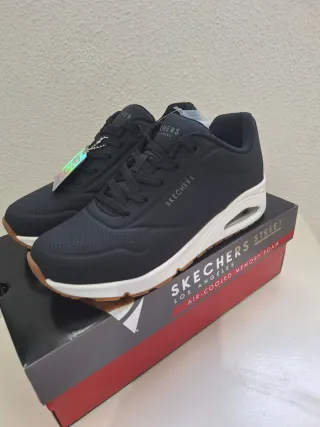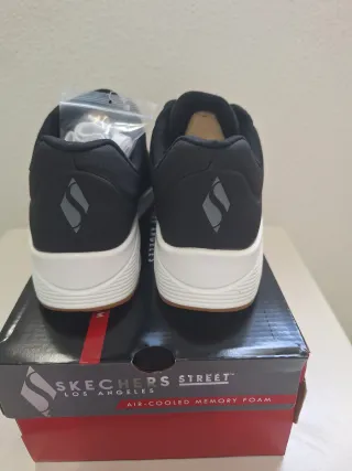 👟 Zapatillas Skechers Uno (Modelo Street) - Negras con Cámara de Aire 🖤 ¡Nuevas a estrenar con etiquetas! 🏷️ Son parte de la línea Skechers Street e incluyen la famosa tecnología Air-Cooled Memory Foam y el detalle de la cámara de aire visible en el talón. Modelo: Skechers Uno (Etiquetadas como Skechers Street en la caja). Color: Negro con suela blanca y base color caramelo (gum sole). Comodidad: Plantilla Air-Cooled Memory Foam para máxima amortiguacion. Talla 37.5 #Skechers #zapatillas #talla37_5 #sneakers #nuevoconetiqueta