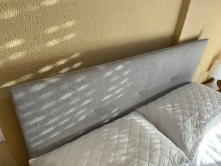 Cabecero de cama tapizado en tela, con un diseño moderno y elegante. - Color gris neutro. - Con botones decorativos. - Apto para camas de matrimonio de 135.