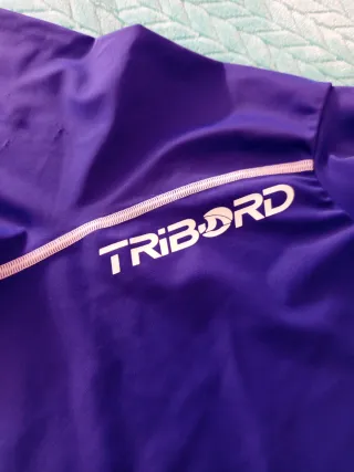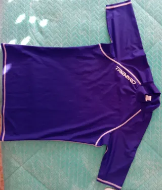 Camiseta de manga corta para surf con protección solar. Talla L - Color morado. - Logo de Tribord en blanco. - Costuras blancas. - Cuello redondo.