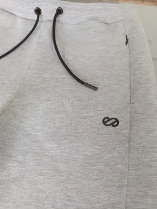 Pantalón deportivo de color gris con cordones negros. Talla M - Logo de la marca en la parte delantera. - Bolsillos laterales. - Puños elásticos en los tobillos.