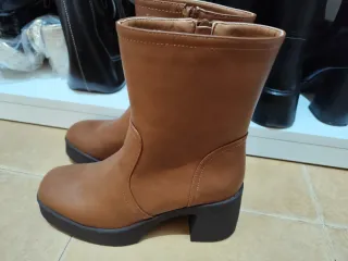 Botas de caña media en color marrón oxido. - Tacón grueso y plataforma. - Cierre de cremallera lateral. Sin estrenar. Marca Amichi. Se entregan SIN caja.