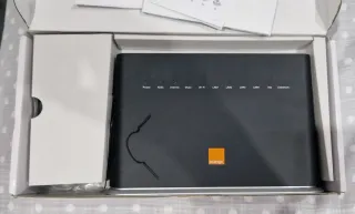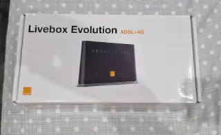 Router Livebox Evolution de Orange con conectividad ADSL y 4G. - Diseño moderno en color negro. - Indicadores LED en la parte superior. - Logo de Orange en la parte frontal.