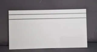 Cabecero de madera con un diseño moderno y elegante. Añade un toque distintivo a tu habitación. - Acabado en blanco. - Dos tiras decorativas en color plateado.