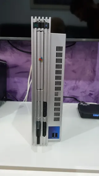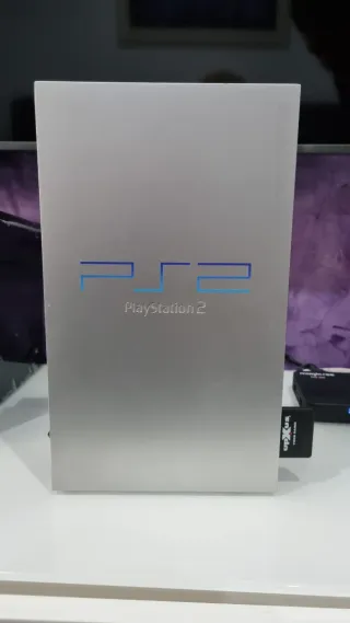 Consola Playstation 2 en color plateado. Ideal para revivir tus juegos favoritos. Playstation 2 sin mandos 70 y con 2 mandos originales sería 85. - Incluye consola. - Sin mandos. - Diseño vertical. - Puertos frontales. - Ranura para Memory Card.
