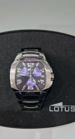 Reloj Lotus para hombre con un diseño elegante y detalles en color púrpura. - Esfera con cronógrafo. - Correa de metal. - Bisel plateado.