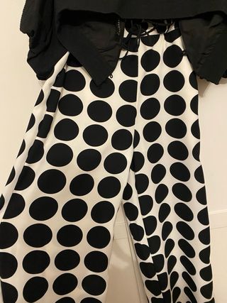 Conjunto de pantalón y corpiño con un llamativo estampado de lunares. - Pantalón de corte recto. - Corpiño con mangas abullonadas.y espalda abierta.