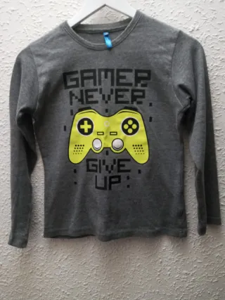 Camiseta niño manga larga Gamer Never Give Up