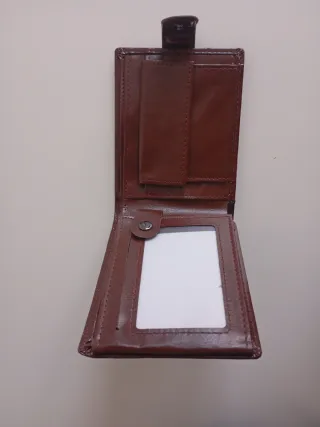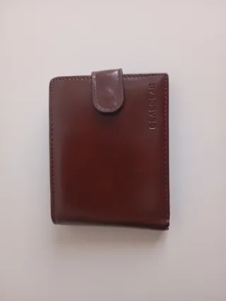 Elegante cartera de piel para hombre. - Diseño clásico y funcional. - Cierre de botón a presión. - Acabado suave y duradero.