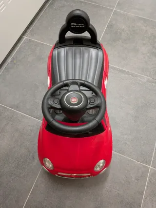 Correpasillos con diseño inspirado en el Fiat 500. - Color rojo vibrante. - Volante con claxon melódico a pilas. - Ruedas giratorias. -Maletero/arcón bajo el asiento. Está como nuevo porque no lo hemos sacado a la calle.