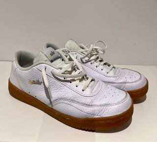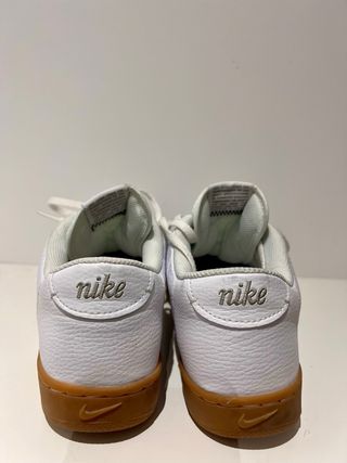Zapatillas de estilo clásico con un diseño atemporal. - Exterior de cuero blanco texturizado. - Suela de goma marrón. - Detalle del logo Nike en dorado. - Cierre con cordones blancos.