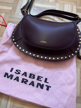 Bolso de piel de Isabel Marant, modelo Oskan Moon. - Diseño curvo con tachuelas doradas. - Cierre de cremallera. - Correa ajustable para llevar al hombro.