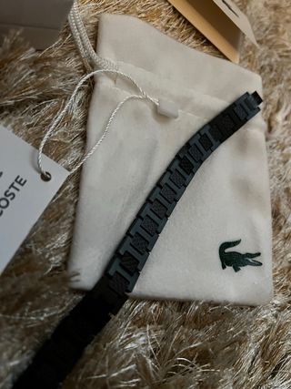 Vendo pulsera negra de Lacoste, diseño moderno y minimalista con el clásico logo del cocodrilo 🐊. Ideal para combinar con cualquier look, tanto casual como más arreglado. La vendo porque no la uso. Perfecta para regalo o para completar tu estilo con un toque de marca. Precio negociable. Entrega en mano o envio por correos.