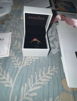 Anillo de la colección Disney x Pandora, inspirado en la Princesa Rapunzel. - Diseño detallado con detalles en plata de ley. - Color rosa y plateado. - Incluye caja y bolsa de Pandora.