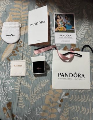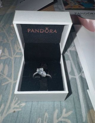 Anillo Pandora con diseño de corazón en relieve y detalles brillantes. - Incluye caja de regalo. - Incluye bolsa de regalo. - Incluye paño de pulido. - Incluye tarjeta postventa.