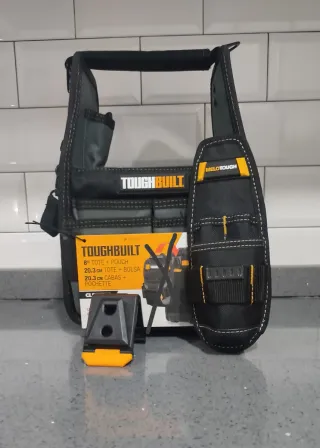 Práctica bolsa de herramientas TOUGHBUILT. - No contiene el bolso pequeño. -Regalo el bolso de la segunda foto - Modelo: 8 Totel - Medidas: 20.3 cm. - Color: Negro y gris. -